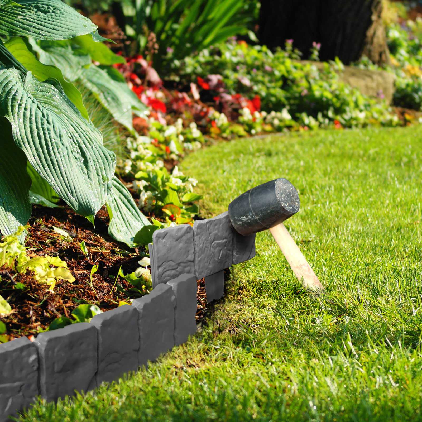 Virágágyások, kerti utak, járdák, gyepszegély kiépítéséhez tökéletes eszköz. A füvet, kavicsot, mulcsot, esztétikusan határolja el egymástól. A kő utánzatnak köszönhetően beleillik a természetbe. Rendkívül könnyen, gyorsan telepíthető. Javasolt továbbá parkosított, füvesített területen a fákat, fenyőket és egyéb ültetett növényeket tetszőleges átmérőben körbevenni vele.
